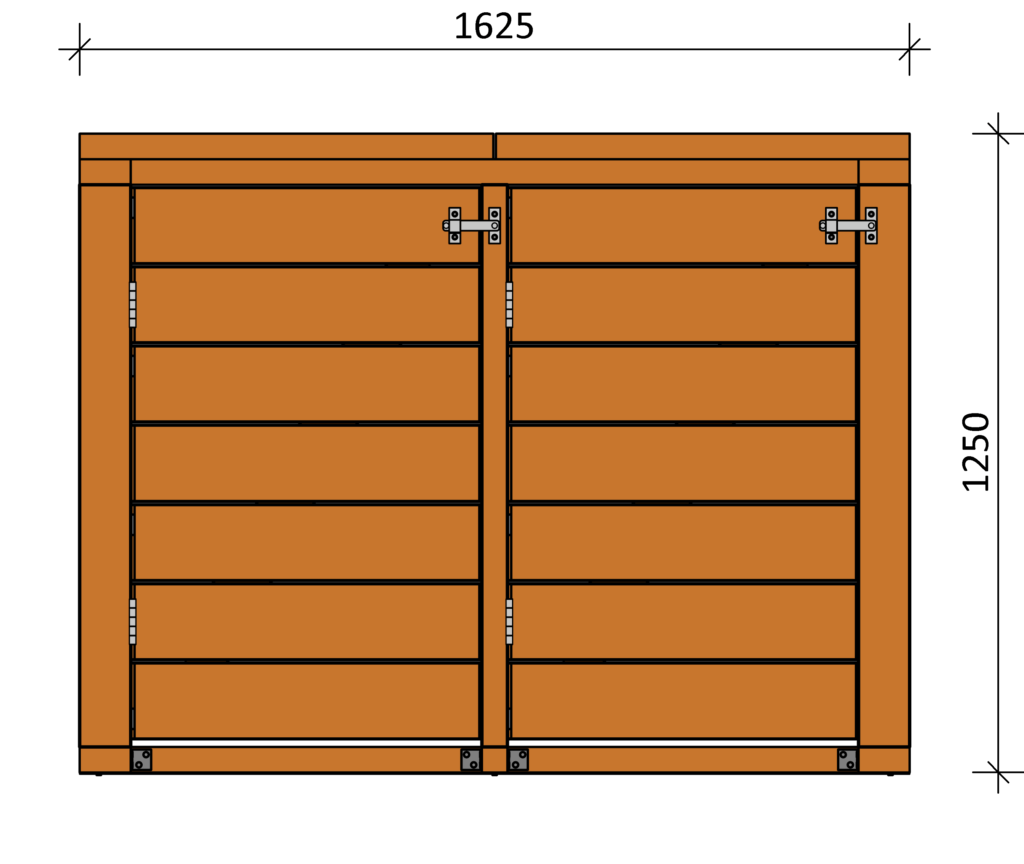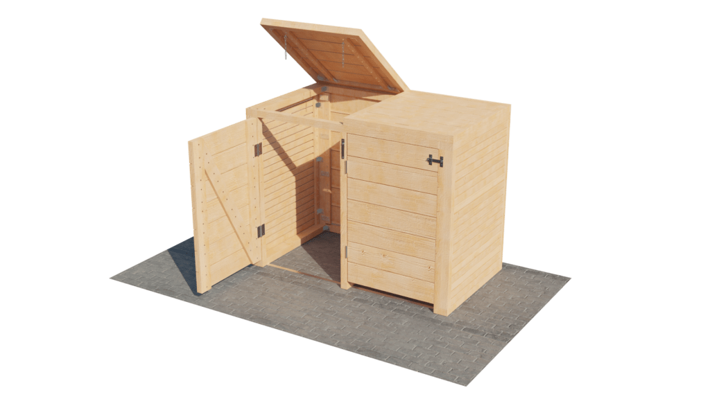 Die maximale Mülltonnengröße für diesen Box beträgt: 750 x 630 x 1100 mm (LxBxH). Möchtest du eine andere Größe? Dann fordere eine maßgeschneiderte Designanfrage an.