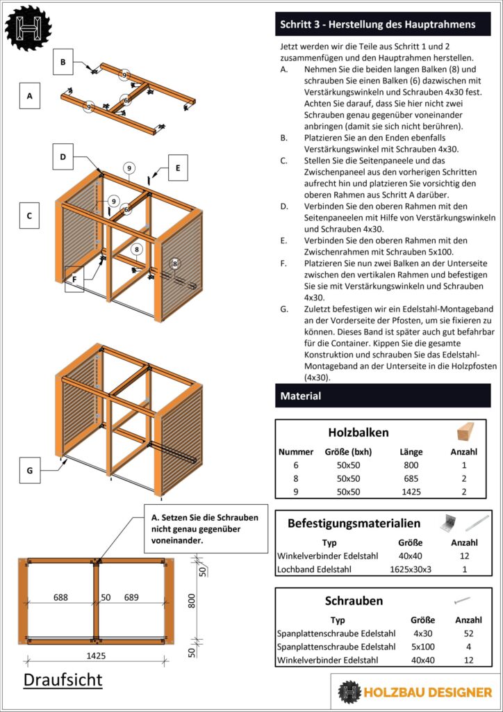Sieh dir auch unsere Baupläne für einen Mülltonnenbox für 3 Mülltonnen an.